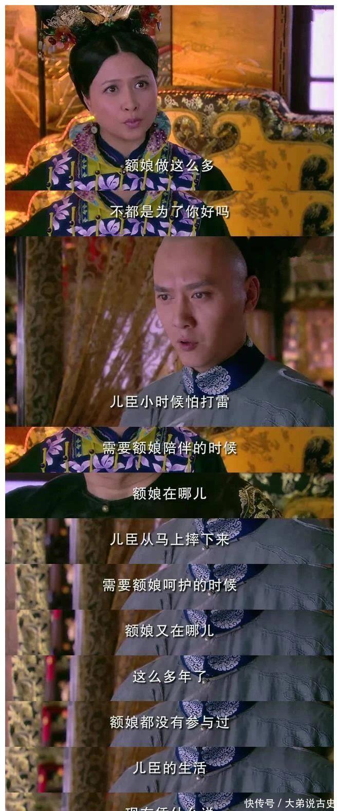 这下,八阿哥忍无可忍了,直接拆穿了这个所谓的慈母的面具:“儿臣小时候怕打雷,需要额娘陪伴的时候,额娘在哪儿?儿臣从马上摔下来,需要额娘呵护的时候,额娘又在哪这么多年了,额娘都没有参与过儿臣的生活,现在凭什么说,怎样是对儿臣好?”